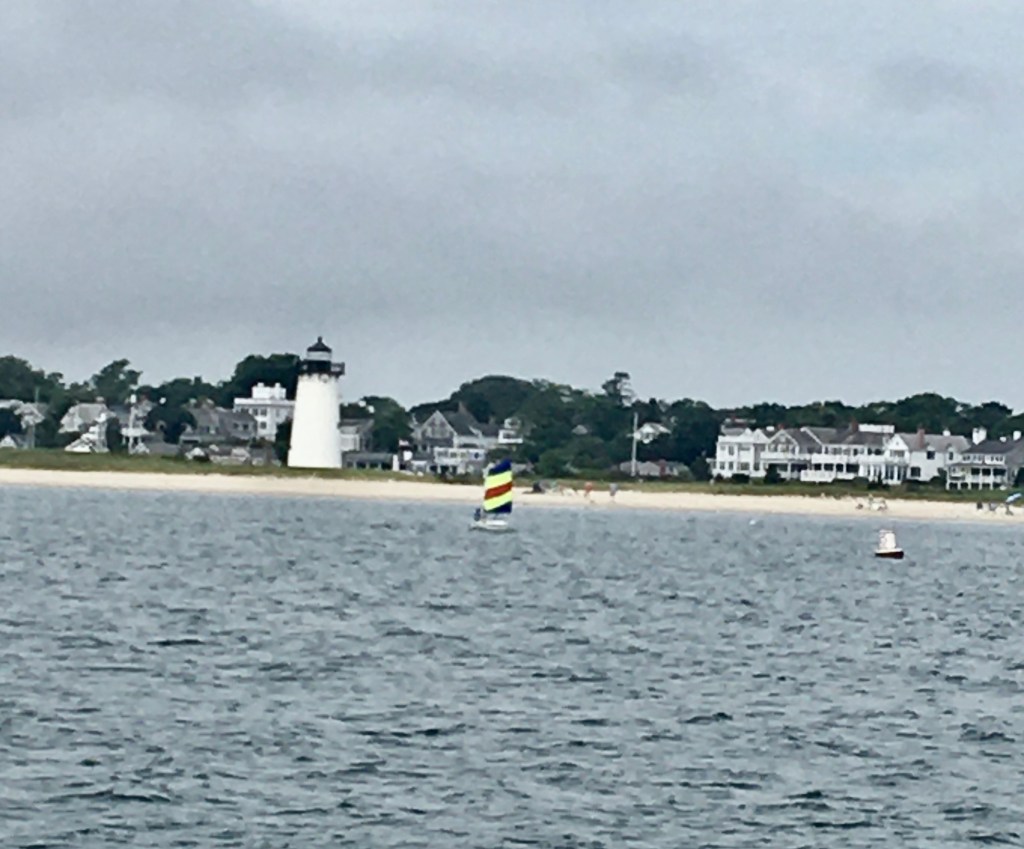 Here we are passing the iconic Edgartown Harbor Light at the harbor entrance.
