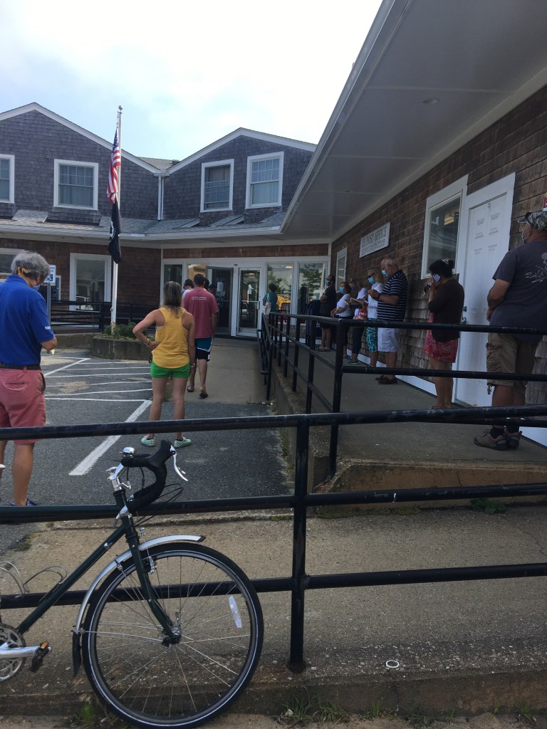 And here’s part of the line at the post office! Everyone masked and 6′ apart!