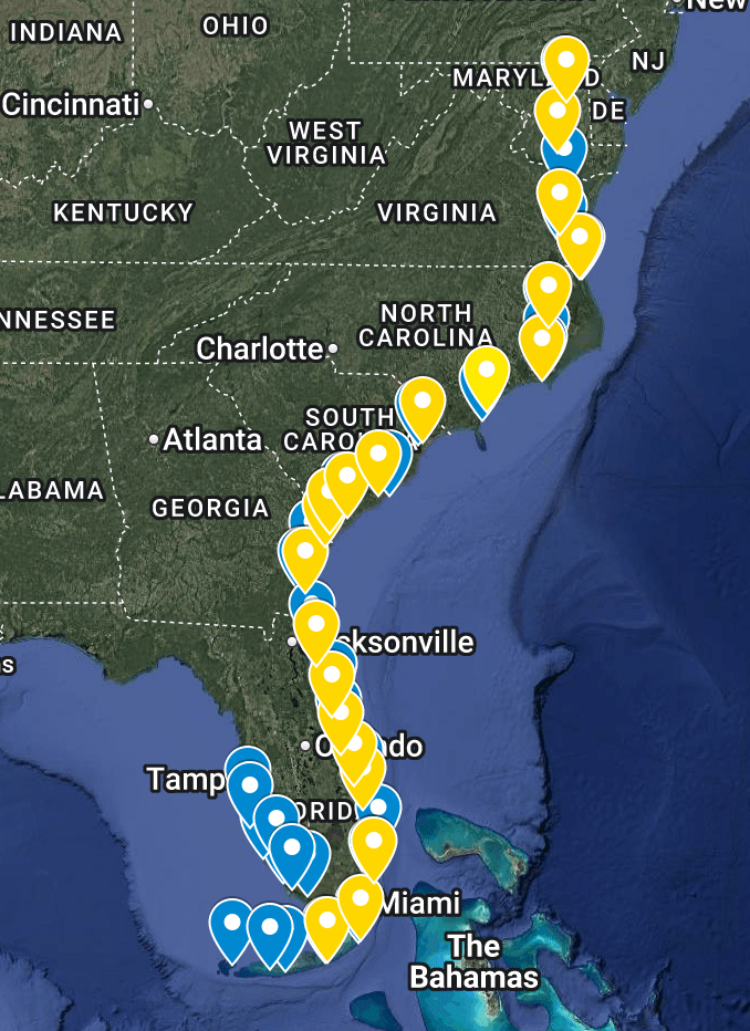 • 1,400 miles from Rock Hall, MD to Key West, FL