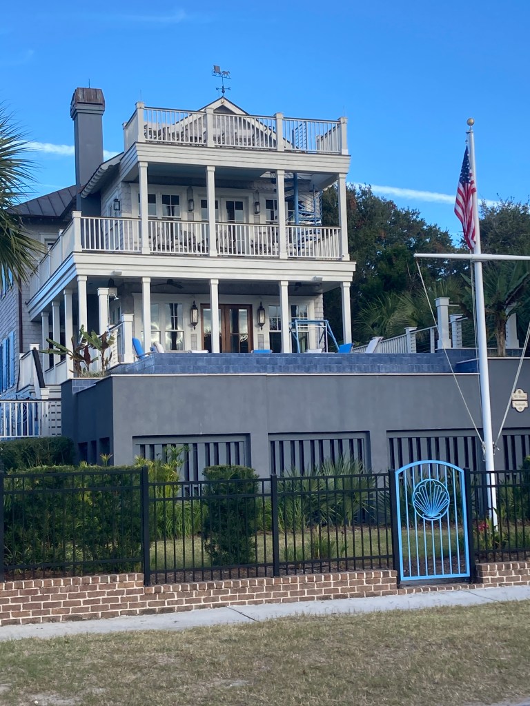 They have built a wonderful home in IoP. Here’s the exterior: two floors of living space, plus a rooftop deck. Four stories in all.