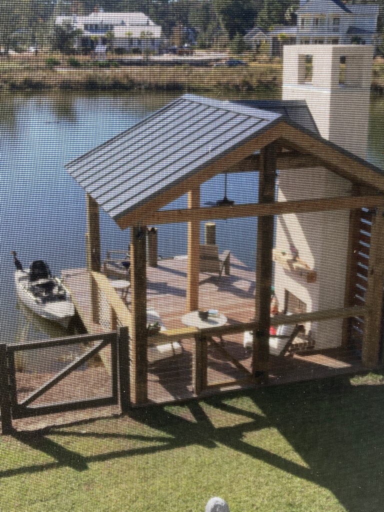 You can also see one of the local private piers. Homes in this stretch tend to be set back a couple of hundred feet from the water, seeking higher ground. Then the piers have to reach out another 100′ to seek deeper water. So there is in effect a 300′ long wooden boardwalk reaching out from the homes.