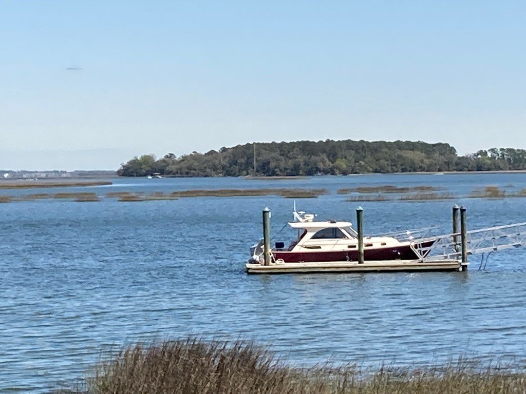 Here’s a shot of Freedom tied up at Wilson’s Landing, the dock at Palmetto Bluff. Isn’t the Low Country setting just gorgeous? This is on the May River, just across Calibogue Sound from Hilton Head Island.