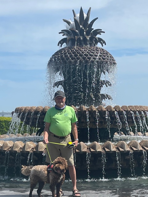 Here’s Connie and Guinness and me and Guinness at the Cooper River Park. You can tell which of us is the better photographer.