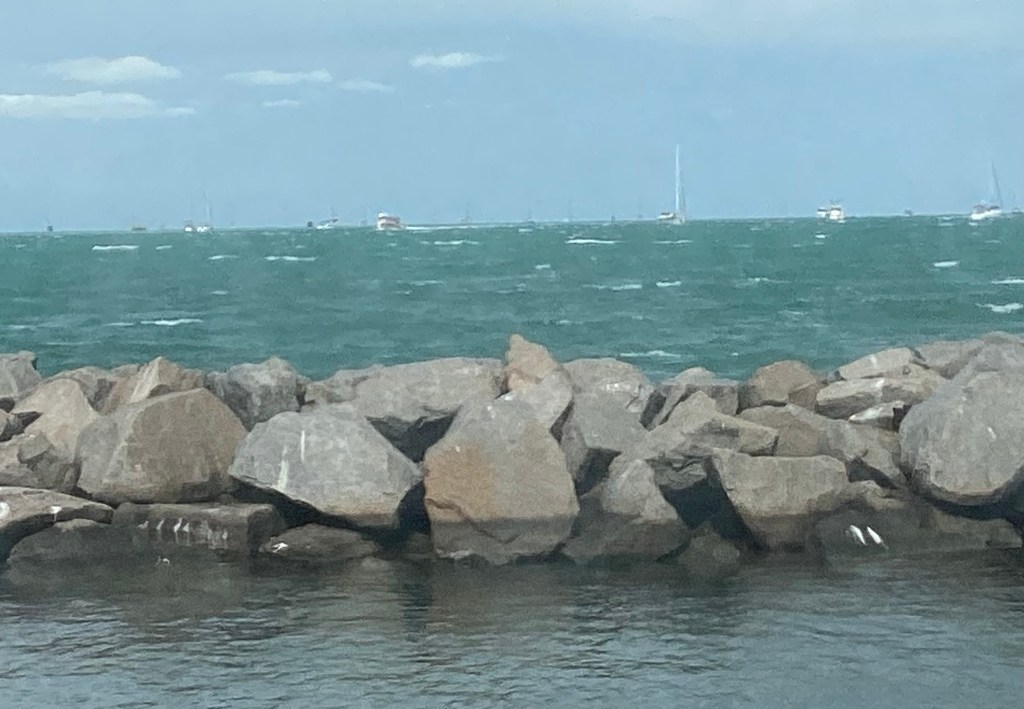 I want to stress that WE are safe – tied securely in our slip and protected by the breakwater (jetty). But it’s a sobering scene.