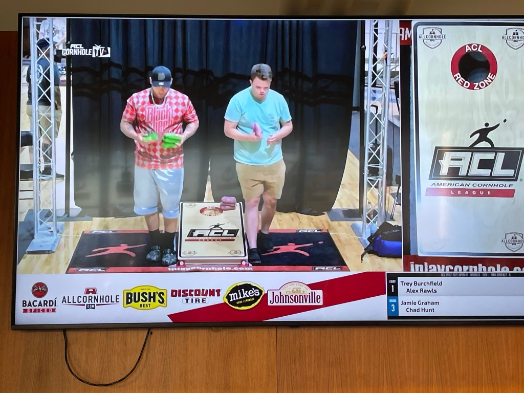 • I’m exhausted. Let’s drink beer and watch a cornhole tournament!
