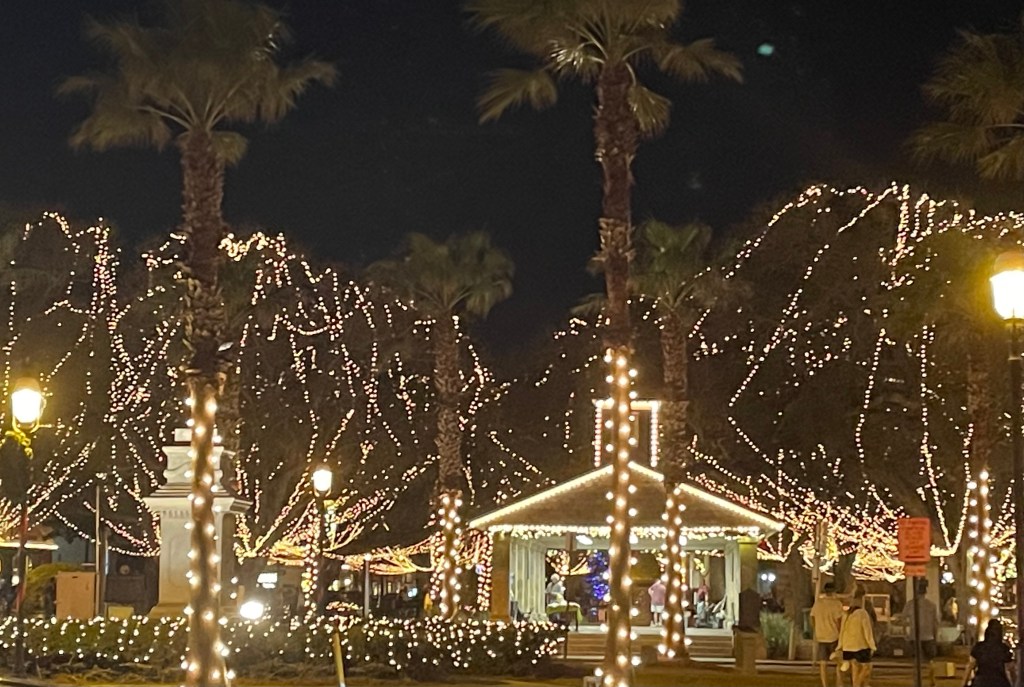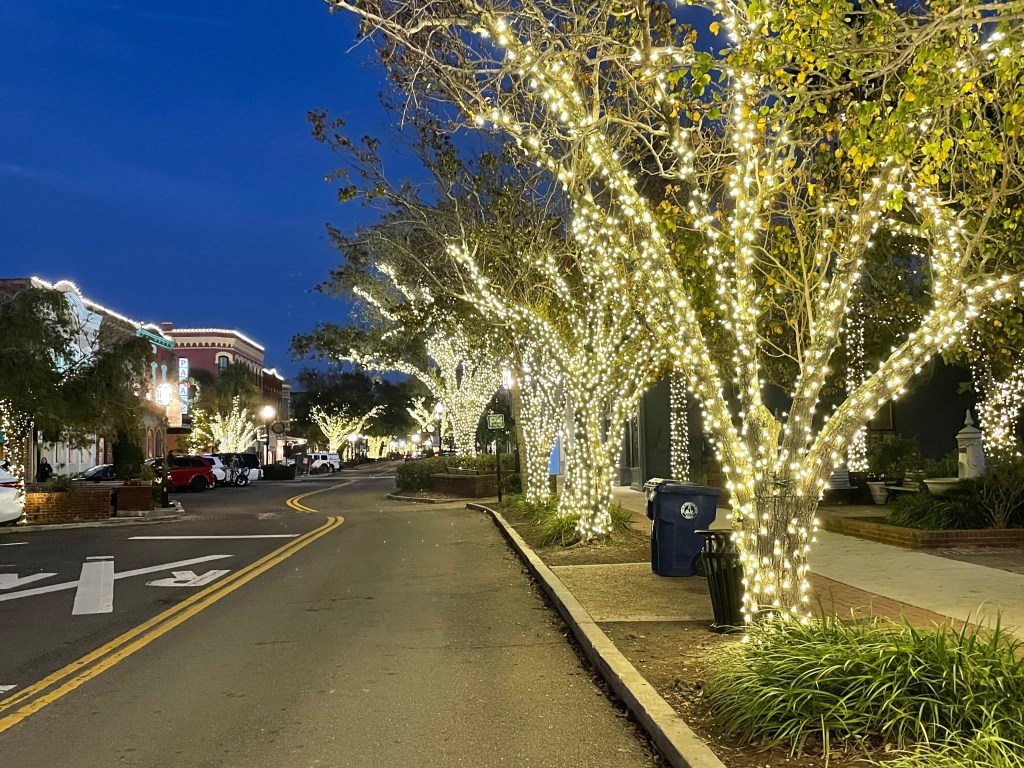 Monday found us in Fernandina Beach: the northernmost town on Amelia Island, and our first stop in FLORIDA. YEA! It turned out to be a charming little town with lots of restaurants (although most were closed on Monday). We had a great meal at Ciao! Italian food is always a good choice! Here’s a photo of THEIR Christmas lights: