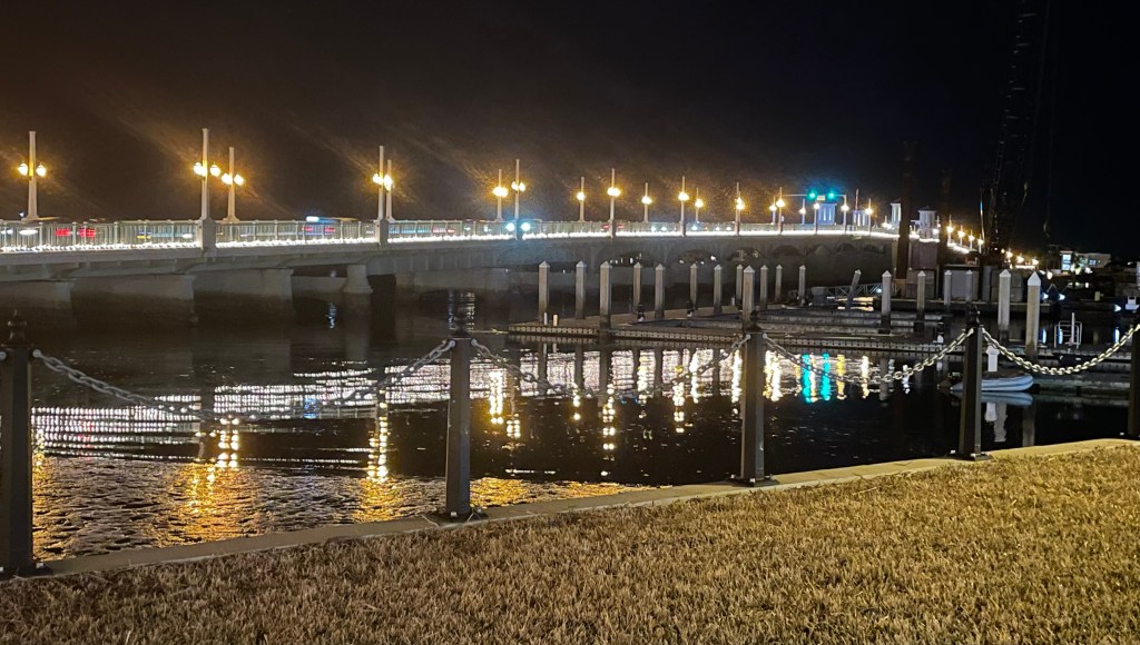Arriving in St. Augustine on Tuesday afternoon, we stayed at the Municipal Marina, right at the foot of the Bridge of Lions. We stepped off the boat directly into the Old Town; wandered up to the Castillo San Marco; and enjoyed Greek Food in the shadow of the Cathedral.