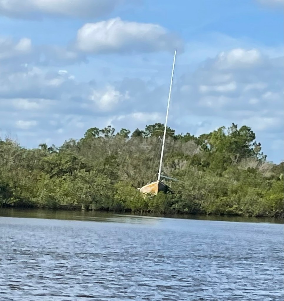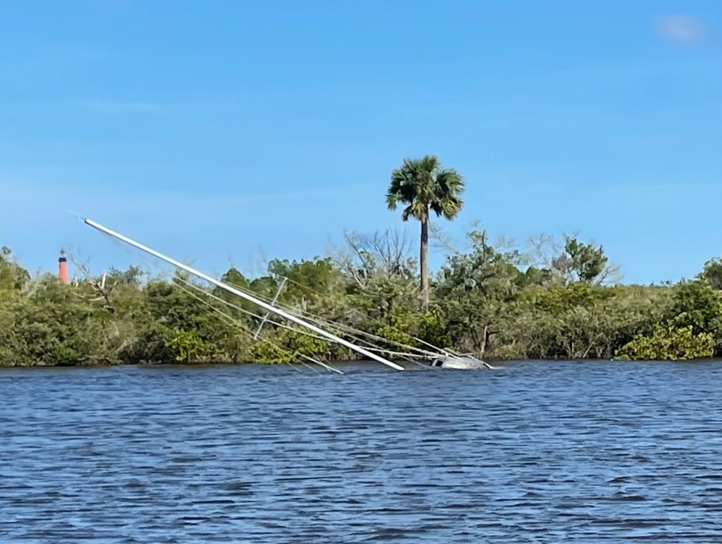 And Wednesday ended like Tuesday began – we touched bottom where the chart said there was water! But we backed out and made it safely to our marina. The Inlet Marina at Ponce de Leon Inlet…home of the Off The Hook Bar and Grille and their famous grouper reuben sandwich. We took these photos of a few boats who weren’t so lucky!. HaHa!