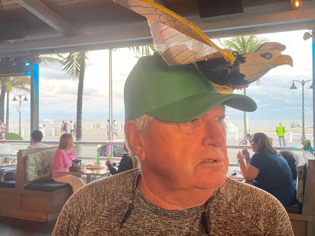 And here’s a shot of me in my subtle, understated Eagles hat, complete with flapping wings and obnoxious shrieks.