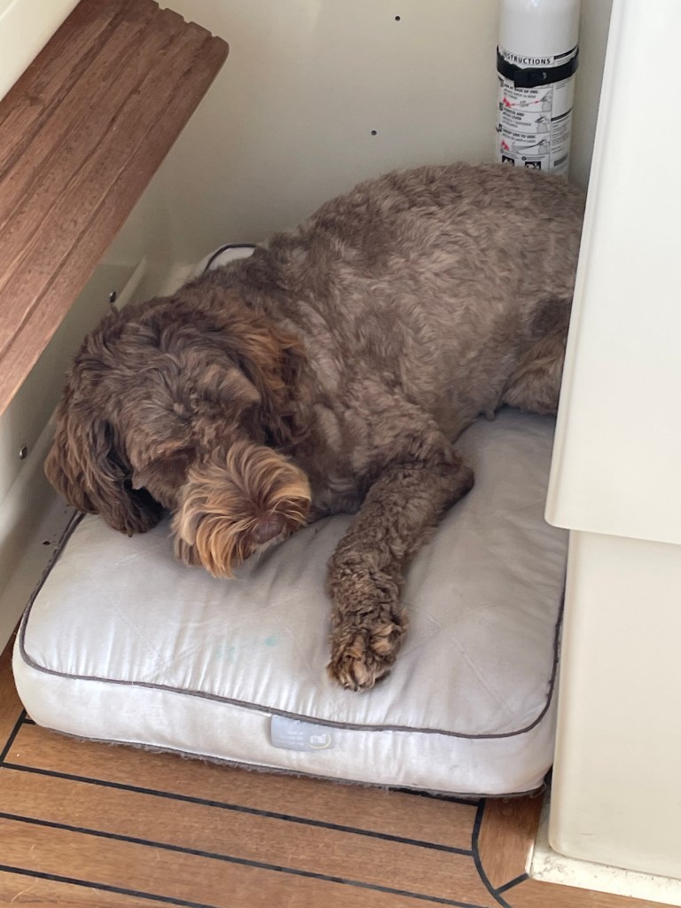 We are now safely tied up in Charleston, and the unfortunate damage was the box of manuals that Rod keeps on board for all the systems. We took pictures of the wet paper and will try to find pdf’s online to replace them.