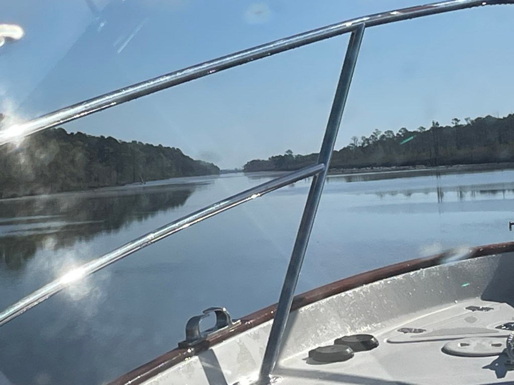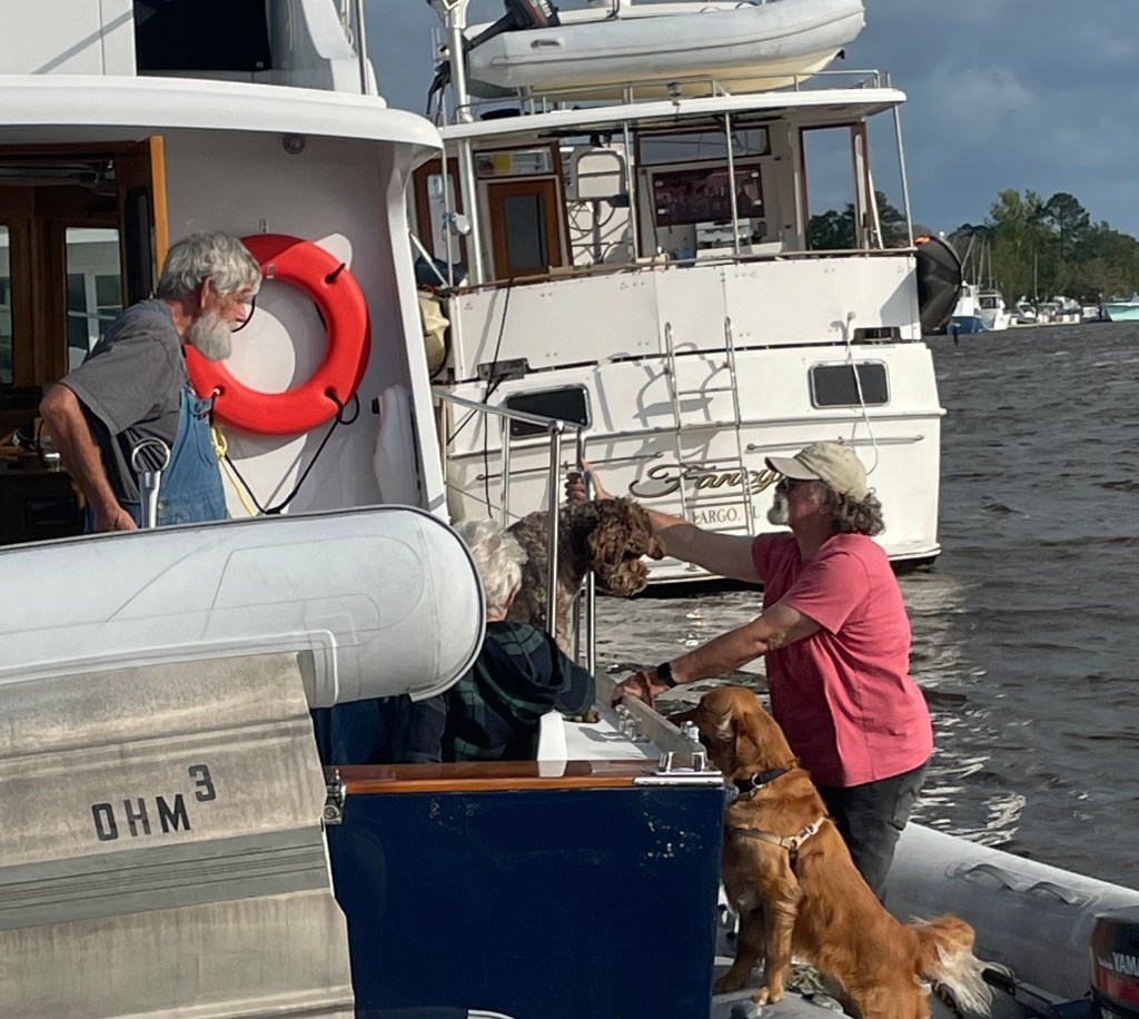 Since we’re traveling the same way home that we did on the way south, the scenery is the same so not many new photos. Every day we pass the same boats, some of whom we see in the marinas when we stop. To pass, the captain calls out the boat on channel 16 asking for permission. Rod is usually the one passing since his boat runs faster than the sailboats or trawlers, but a boat we had met in Georgetown wanted to pass us and asked if it would be okay with Guinness – a first shout out for the dog on the ICW! (They had met Guinness during our layover in Georgetown).