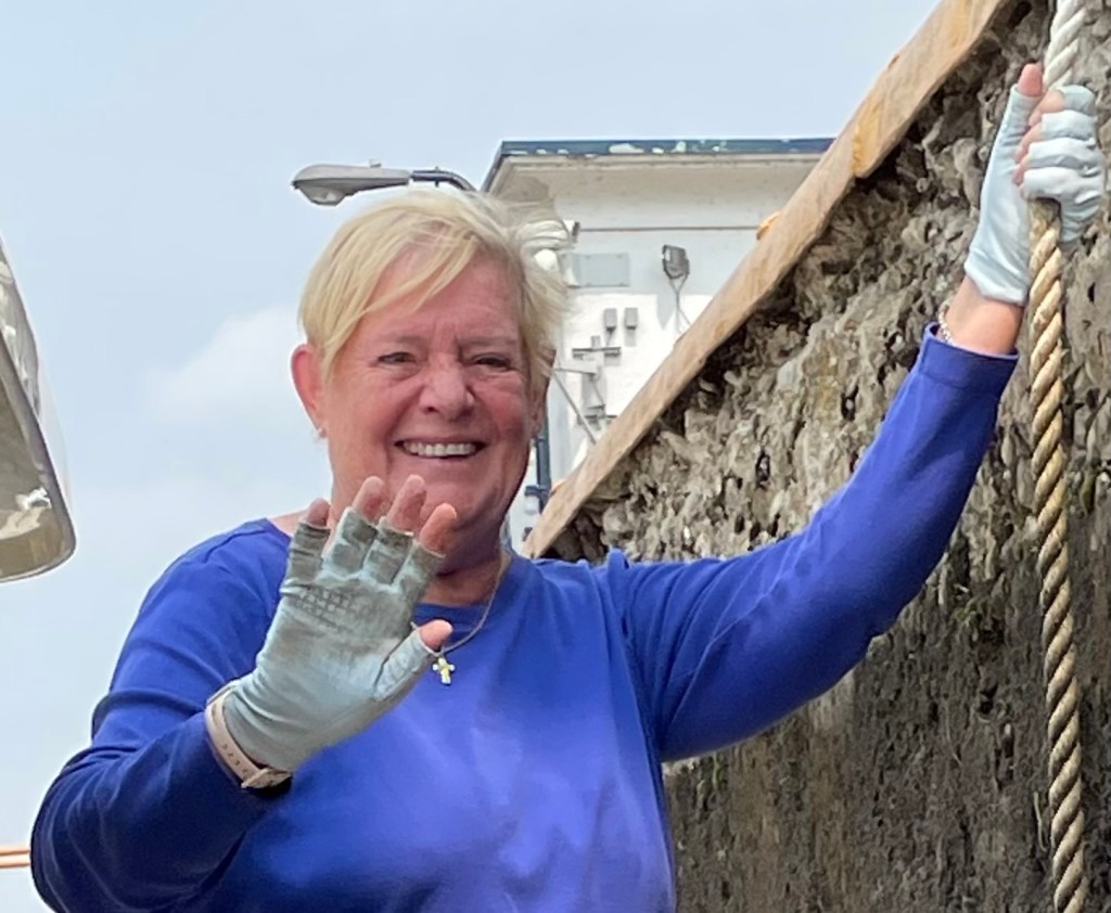 But the fun part is that I get to contribute to the trip. Sure, I can drive when we’re in a straight, calm area, but when I’m holding the mooring lines, I get to to help Rod move the boat and  steer clear of ladders with bolts that could tear the fenders or openings that could get our fenders stuck.  I feel like part of the team!