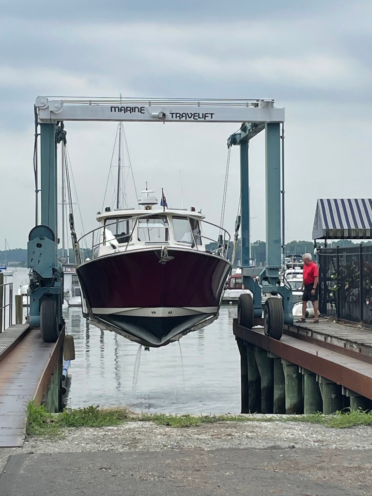 THEN…we had to wait another 1-1/2 hours for the tide to rise enough so that we could bring the boat into the TravelLift.