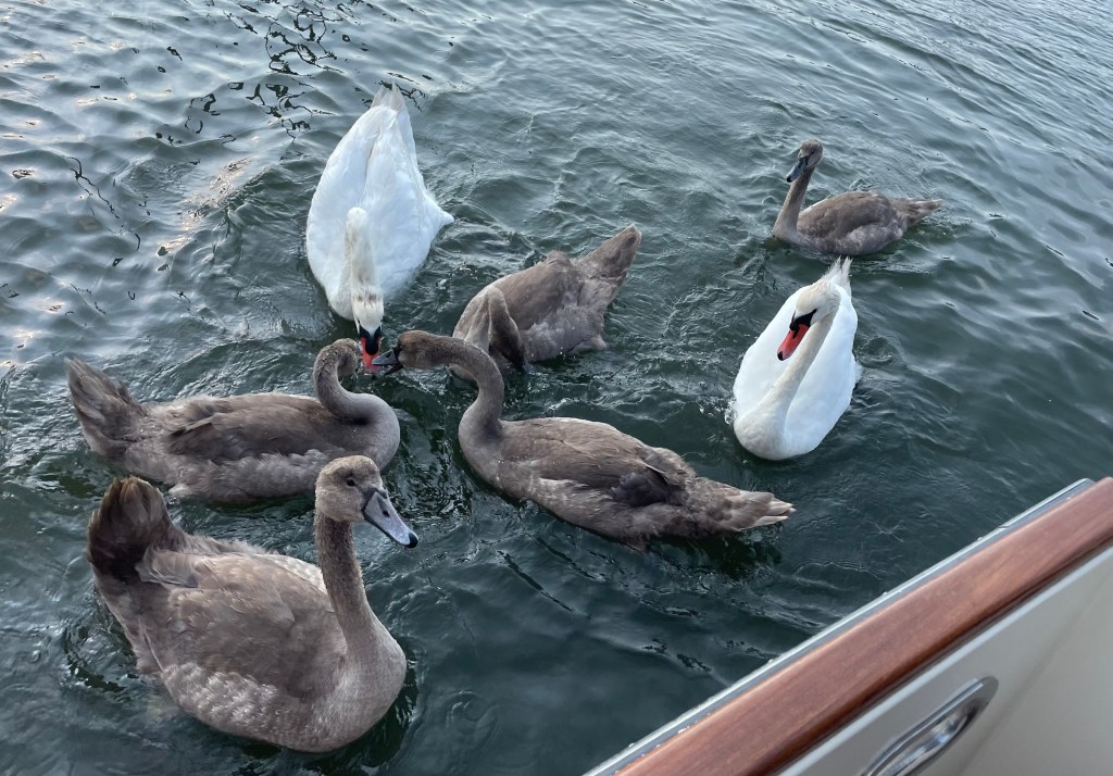 Last night in Manhassett, we had visitors to the boat – Mr. and Mrs. Schwans and their five kids.