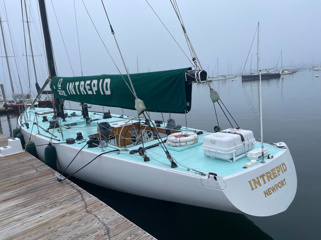 On Sunday, we traveled from Boothbay Harbor to Rockland, our first destination within Penobscot Bay. Gentle rollers and little wind, but we had the Radar on all the way – lots of fog and rain. And it was cold – just 65*. Quite a contrast from the 95* at home. And THAT”s why we came to Maine – to escape the heat.