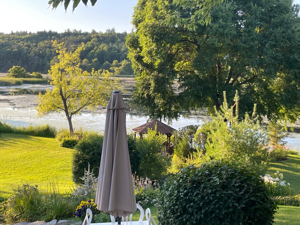 It’s called Mt. Ste. Hillaire, although it should clearly be called Camelback Mountain. We’re told that the mountain offers spectacular views of Montreal. How is that possible? It’s because when we left Montreal, we ran NE for 35 miles; once we turned into the Richelieu River, we ran SW for 35 miles, so at this point, we are just 12 miles from Montreal!